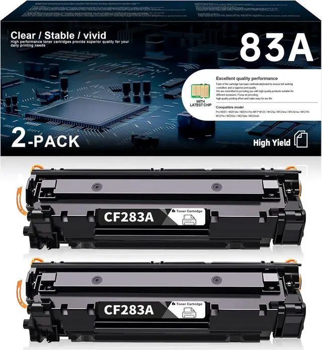 • Package Contents: 2 New compatible 83A | CF283A Black Toner Cartridge