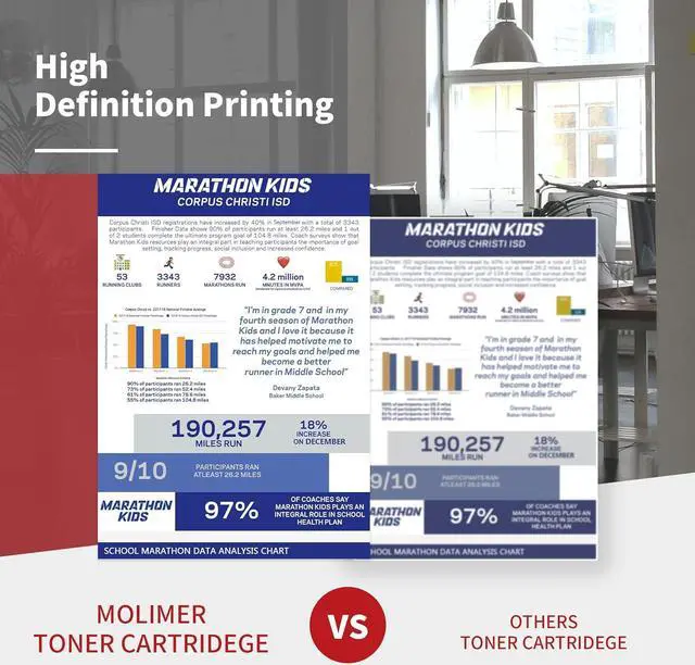 MOLIMER Toner Cartridges the quality of prints clearly smoothly crisp dark sharp,