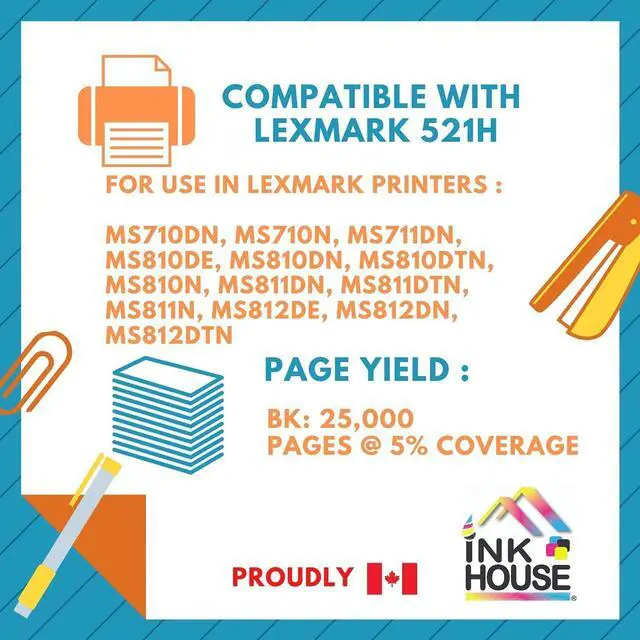 Compatible with - MS710dn, MS710n, MS711dn, MS810de, MS810dn, MS810dtn, MS810n, MS811dn, MS811dtn, MS811n, MS812de, MS812dn, MS812dtn