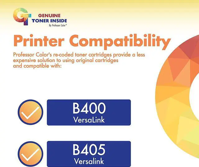 Experience the same reliable performance without the high cost. We've taken a toner cartridge that's been made by the OEM for a different sales channel and modified the code so that it can be used in a standard VersaLink B400 and VersaLink B405. We do this because we understand the importance of using Genuine Toner Inside. While other "compatible" brands may be cheaper, you run the risk of putting unknown and potentially detrimental toner formulations into your machine. We personally inspect each and every toner to verify it is new, unused, and undamaged. After that, we change the code, and then repack it in a plain, easy-to-open box that is the same as the original, however without the fancy printing. For Use In Xerox VersaLink B400/B405 Replaces Part Number: 106R03584 Unused Toner Cartridge Re-Coded for Machines in the USA Easy-To-Open Packaging, Just Like The Original Page Yield: - 24,600 Pages at 5% Page Coverage