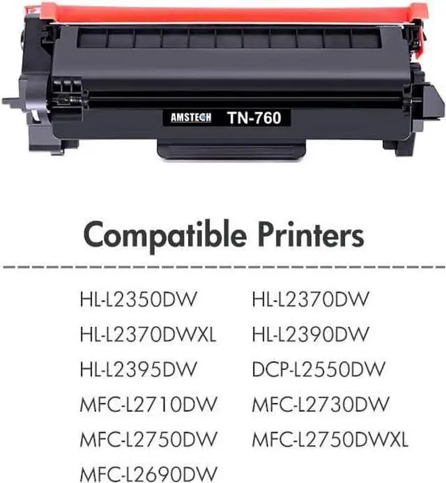 Quality Assurance: Outstanding reliability, easy to install and use, clear and stable printing. Amstech compatible TN 760 for Brother toner cartridge provides high quality and affordable office supplies