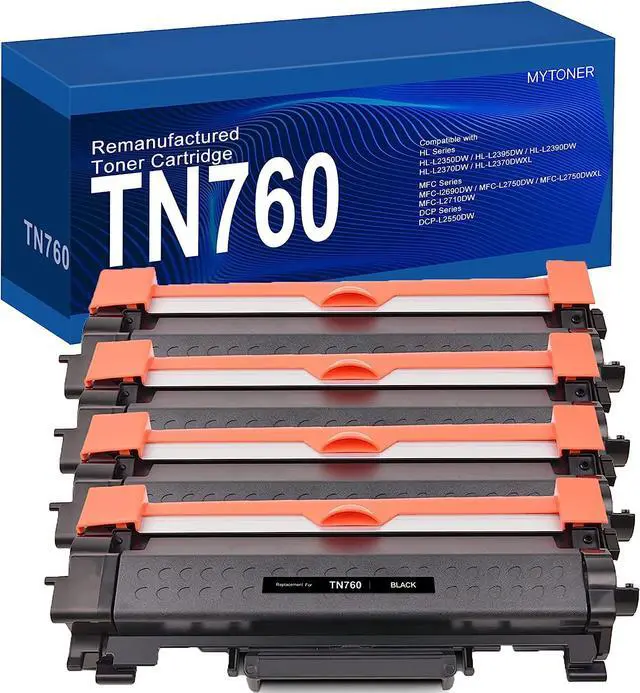Whats in the box: 4-Pack High Yield Remanufactured Toner Cartridge Replacement for Brother TN760 TN-760