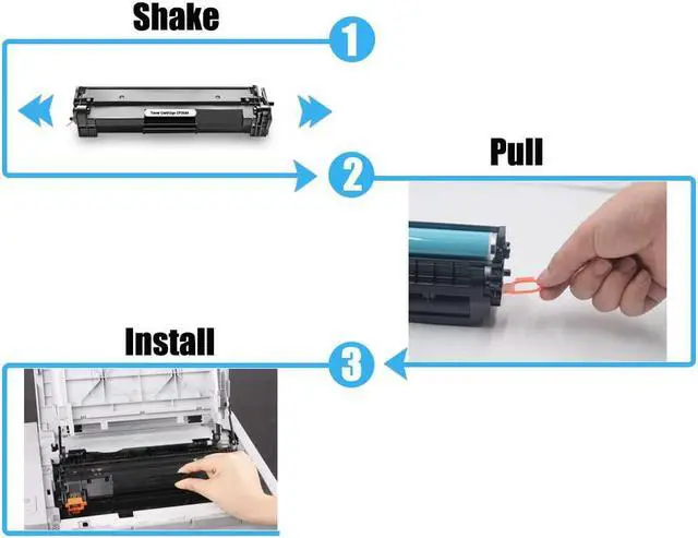 Simple installation. Just need to shake the toner, pull the tape and remove the yellow cover, you can install the toner easily.