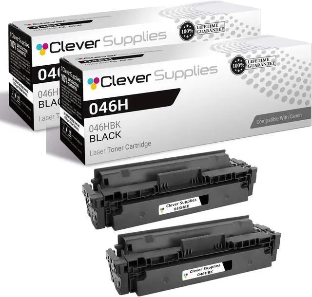 Clever Supplies brand products are made with high quality components. Why pay more for cheaper product with a high defective rate? You will end up having to send it back to the manufacturer. Get a quality product that you KNOW will work. Purchase the Clever Supplies Products Compatible for Canon 046H (046HBK) 2 Black and experience the difference! All Clever Supplies brand products are backed by '100% Quality Satisfaction' 1 year warranty against defects in materials and workmanship for all toner products. Free tech support for a Clever Supplies problems for all Clever Supplies brand products. The use of Clever Supplies brand replacement laser toner cartridges and supplies does not void printer warranty. Premium Quality Replacement Toner Cartridge is made by ISO9001 Certified Factory to Meet or Exceed OEM Standards. These units are manufactured 100% brand new with all new parts including OPC drums, wiper blades, a smart chip and other internal parts, they are an economical alternative to expensive OEM 046HBK, Compatible Toner Cartridges. This is a Compatible for Canon 046H Toner Cartridges 2 Black guaranteed to perform with Canon Laser Printers. It replaces the original Canon 046H Toner Cartridge 2 Black. The compatible replacement for 046HBK. We offer a 100% Quality Satisfaction Guarantee on our Compatible for 046HBK Laser Toner Cartridges and supplies. For use in the following printers: ImageClass LBP654Cdw, ImageClass MF731Cdw, ImageClass MF733Cdw, ImageClass MF735Cdw