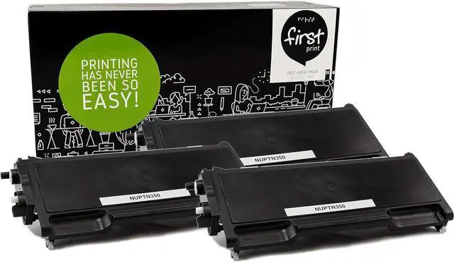 Included in the box: 3 pack black toner Cartridges Compatible For Brother TN350 Print more and save: 2,500 Page Yield @ 5% Coverage Compatible For Brother Printer Models: DCP-7020, HL-2030 HL-2040 HL-2070N, IntelliFax 2820 2910 2920, MFC-7220 MFC-7225N MFC-7420 MFC-7820N Print results: crisp text, bold black and sharp graphics (all may vary depending on the quality of your paper). The perfect solution for your printer while maintaining product quality at a better price. First print is your # 1 canadian toner cartridges supplier since 2005. Winner of many business awards over the years, First Print continue year after year to offer the best possible products for our customers. We offer bilingual (French and English) customer service and NO WORRIES of return of the product if you are not satisfied. Certified by ISO9001, ISO14001, CE and SMTC.