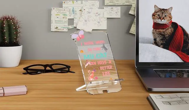 A Cute and Practical Office Desk Decor Phone holder is a parctical gifts.Three playful and cute kittens represent health, happiness and joy.The practical phone holder combined with cute and playful cat design and meaningful text makes this product perfect for both giving away and self-use.