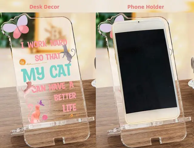 A Cute and Practical DecorThree playful and cute kittens represent health, happiness and joy.The practical phone holder combined with cute and playful cat design and meaningful text makes this product perfect for both giving away and self-use.