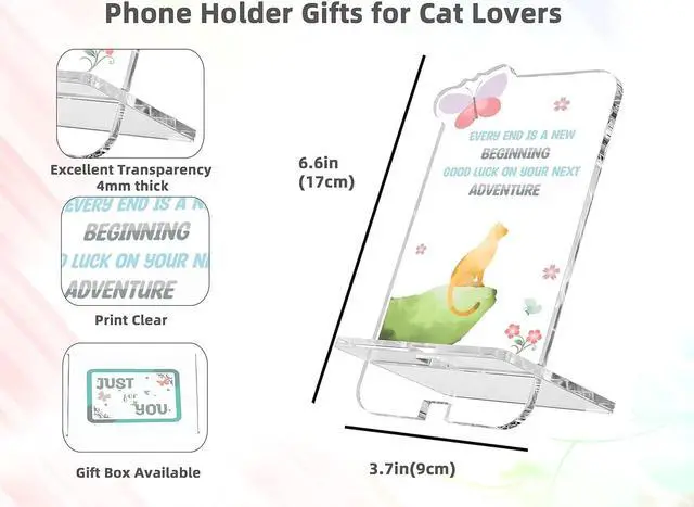 A CUTE and PRACTICAL GIFT Phone holder is a parctical gifts. We desgined a cat looks forward.It stands on the edge of hill just like a warriors. This illustration represents that be cofidece with the future. Good things is coming soon. When awesome cat and heart-warming texts are combined with a high-quality phone holder, this gift will be able to perfectly present your wishes in front of receiver.Also, they are unique gifts for women and cat desk decor for cat lovers with nice looking.