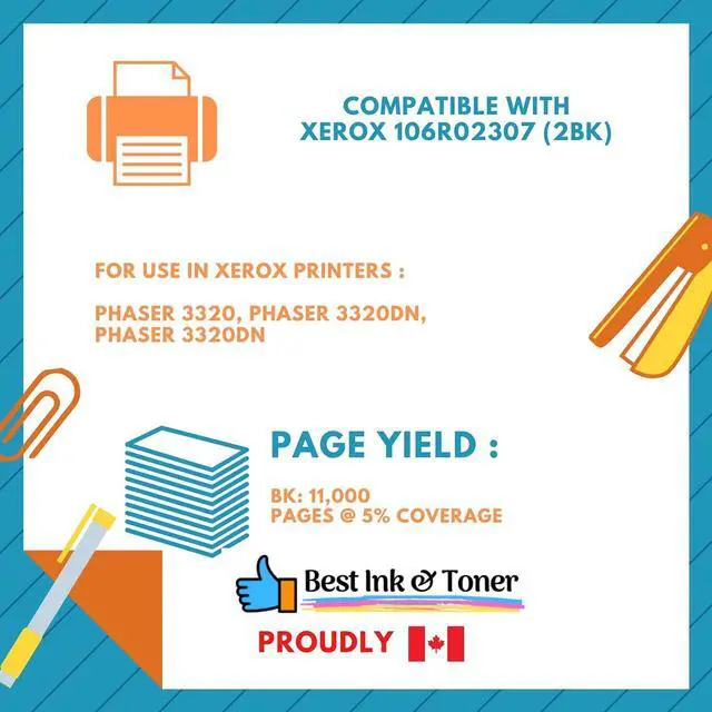 Best Toner Replacement for Xerox 106R02307 Black Toner Cartridge Compatible for Xerox Phaser 3320, Phaser 3320DN, Phaser 3320DNI (11,000 Page Yield) (2 Per Pack)