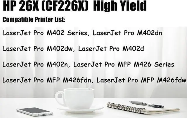 HP 26X (CF226X) Compatible Black Toner Cartridge - High Yield of HP 26A (CF226A) Compatible Printer List: Removing the protective sealing tape Removing the cover Removing the orange pins Shaking the toner cartridge