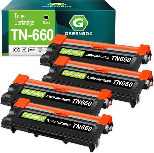 Product Name: GREENBOX Compatible Toner Cartridge Replacement for Brother TN660 TN630 Compatible Printers: Brother HL-L2300D, Brother DCP-L2520DW, Brother DCP-L2540DW, Brother HL-L2360DW, Brother HL-L2320D, Brother HL-L2380DW, Brother MFC-L2707DW, Brother MFC-L2705DW, Brother MFC-L2720DW, Brother MFC-L2740DW, Brother HL-L2305W, Brother HL-L2315DW, Brother MFC-L2680W, Brother MFC-L2685DW, Brother MFC-L2700DW, Brother HL-L2340DW Printer Contents: 4 Pack Compatible Replacement for Brother TN660 TN-660 TN-630 Toner Cartridges (4 Black) Page Yield: 2600 pages per TN-660 Black Toner Cartridges at 5% coverage (Letter/A4) GREENBOX continues to provide you with high print volume, make your printing life easy