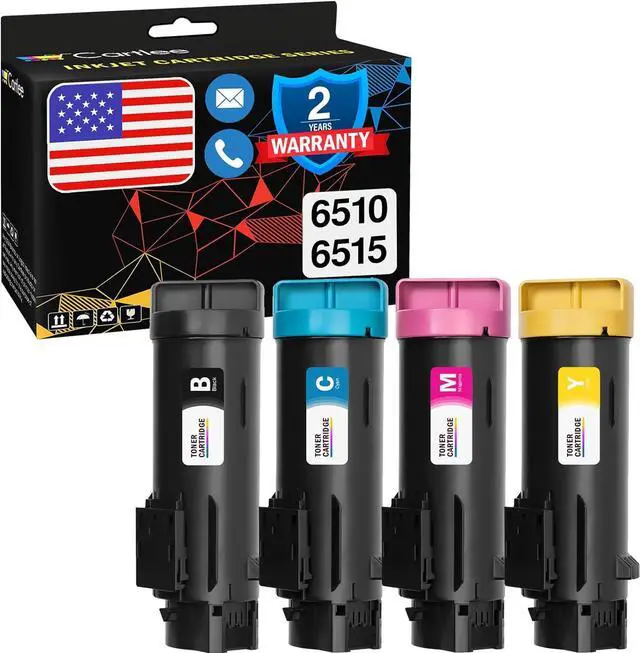 Contents: 4 compatible 6510 / 6515 toner cartridges (1 Black, 1 Cyan, 1 Magenta, 1 Yellow).
