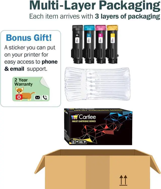 Our cartridges are filled to capacity using vacuum seal technology, which minimizes trapped air and maximizes ink volume. Greater page yield also lessens the burden on the environmental.