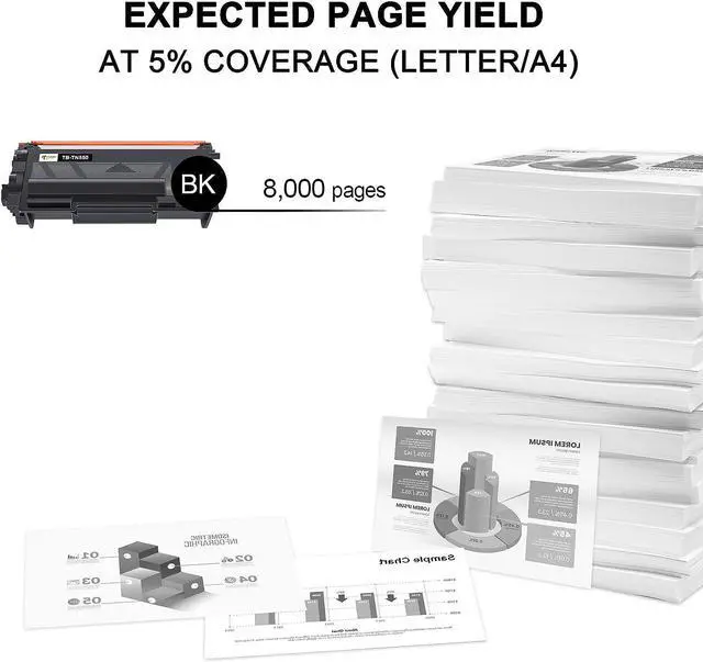 Page Yield: 8,000 Pages per TN850 High Yield Toner Cartridge (Letter/A4, at 5% Coverage)