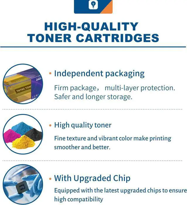 High-quality Color Effects: Black TN-760 TN-730.Fine toner, smooth coloring, balanced printing color. Make the printed product more delicate and clear. Avoid poor print results from uneven colors.