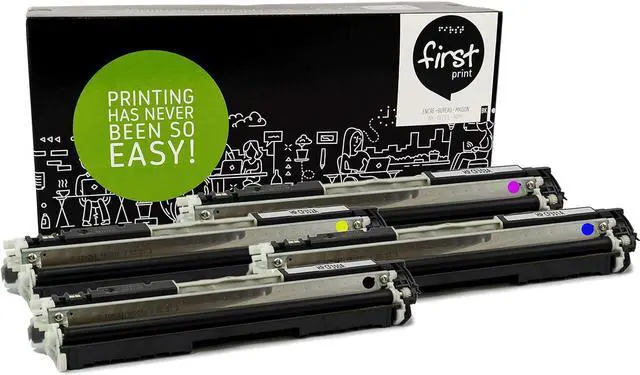 This is NOT an OEM cartridge. Compatible Toner Cartridges for CF350A CF351A CF352A CF353A 130A 3,500 Page Yield for Black / 2,800 Page Yield for each Color @ 5% Coverage Compatible Printer Models: Pro MFP M177fw, Pro MFP M176 First print is your # 1 canadian toner cartridges supplier since 2005. Winner of many business awards over the years, First Print continue year after year to offer the best possible products for our customers. We offer bilingual (French and English) customer service and NO WORRIES of return of the product if you are not satisfied. Certified by ISO9001, ISO14001, CE and SMTC.