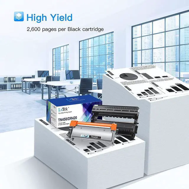 LxTek toner cartridge & drum unit replacements for TN450 TN-450 DR420 DR-420 are strictly tested with industry quality control processes.