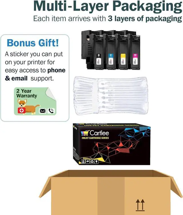 - Cartridges come filled with a new generation chip and work with all new printers. We offer a hassle free money back guarantee.