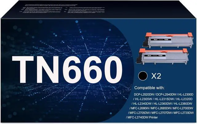 2-Pack Black Replacement for TN660 TN-660 TN630 Toner Cartridges