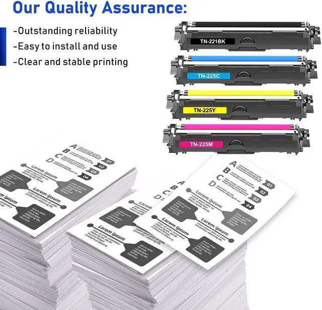 Include: Compatible for TN221 TN-221 TN225 TN-225 Toner Cartridge, 4Pack -Includes TN221BK TN-225C TN-225Y TN-225M Toner, High Yield What printer model is compatible with? MFC-9130CW MFC-9140CDN MFC-9330CDW MFC-9340CDW, HL-3140CW HL-3142CW HL-3150CDN HL-3152CDW HL-3170CDW HL-3172CDWHL-3180CDW, DCP-9020CDN Toner Printer Applicable scene: office,school,home and other scenarios.