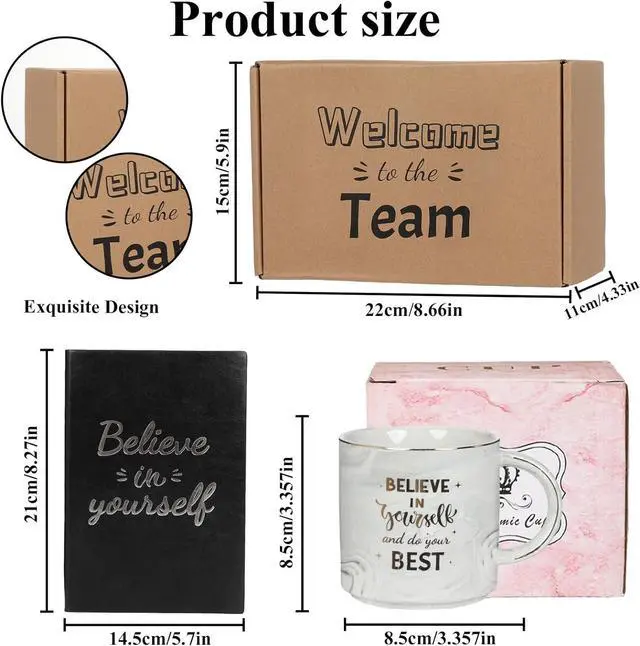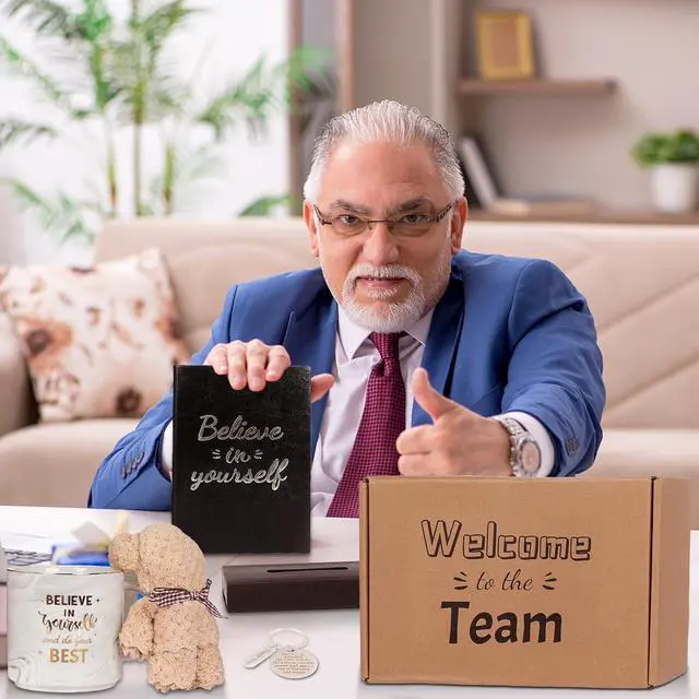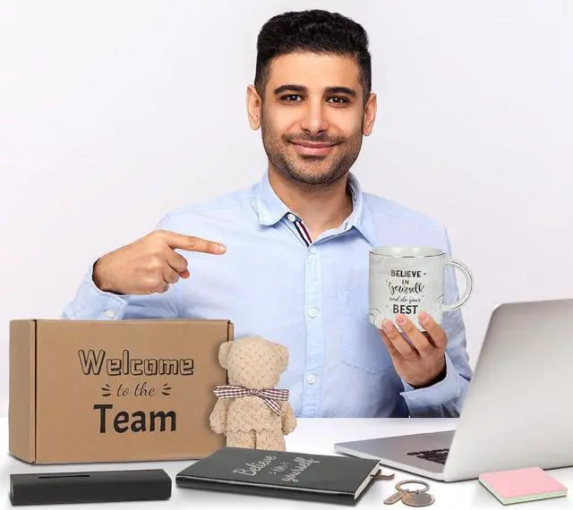 New Employee Welcome Gift Set Onboarding Kit Includes Grey Marble Coffee Mug Greeting Card Key Chain Multifunction Pen Notebook Post-it Note Bear Towel with Great Gift Box for Coworkers Friends