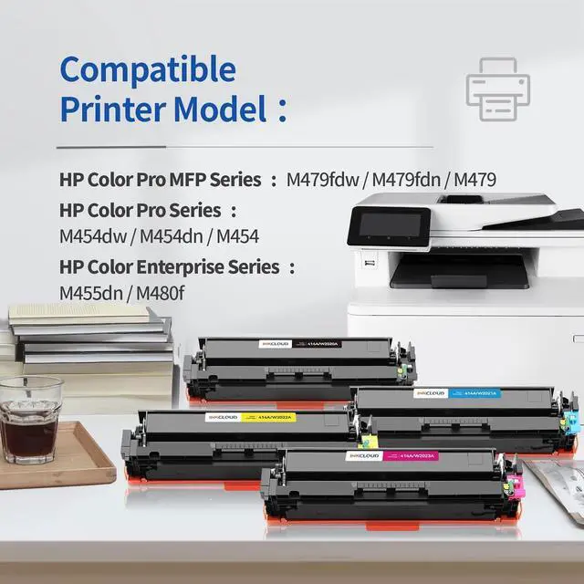Our 414A(with Chip) Compatible Toner CartridgesReplacement for HP 414 A X W2020A W2021A W2022A W2023A are designed to work perfectly with your HP printer: HP Color LaserJet Pro M454dw, M454dn, Color LaserJet Pro MFP M479fdw, M479fdn, M479dw, Color LaserJet Enterprise M455dn, Color LaserJet Enterprise MFP M480f printers
