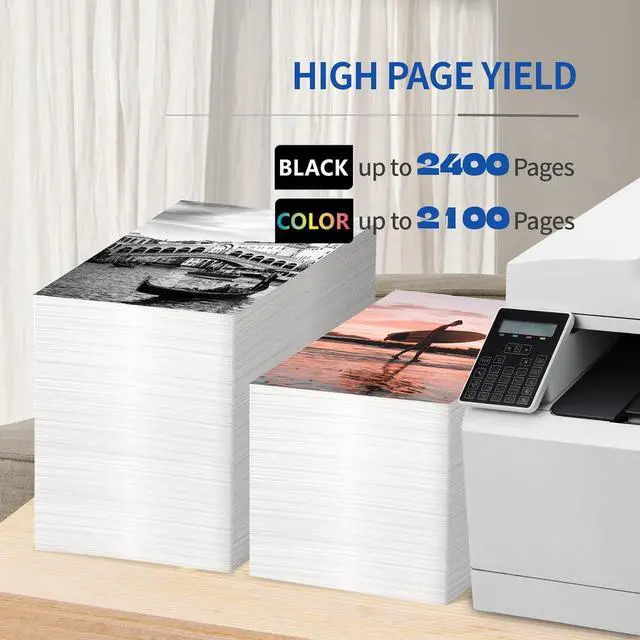 Page Yield: Black ink is Up to 2400 pages and color is 2100 pages per toner cartridge at 5% coverage(Letter/A4).