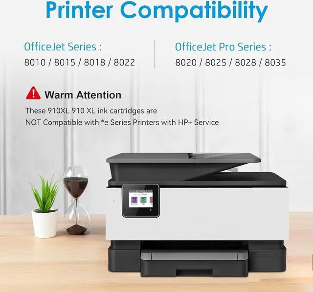 (Warm Attention: These 910XL 910 XL ink cartridges are NOT Compatible with *e Series Printers with HP+ Service)