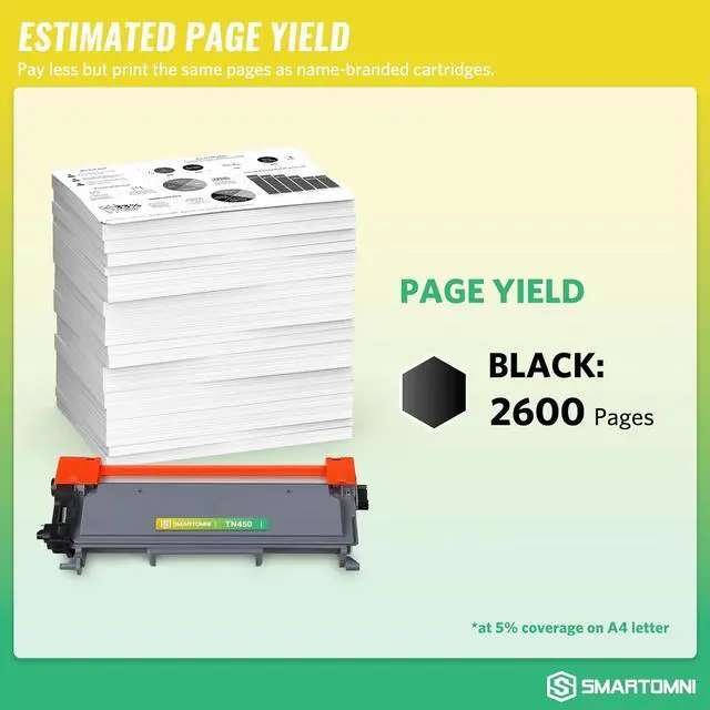 Estimated Page Yield: Per black toner can print 2600 pages at 5% coverage of letter/A4 as usual.