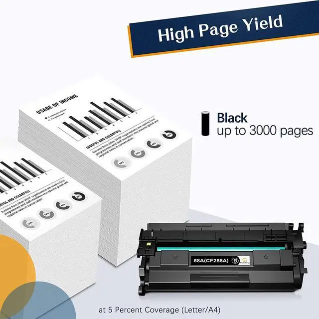 High Page Yield: 3,000 Pages Per 58A CF258A Toner Cartridge at 5 Percent Coverage of A4 Paper