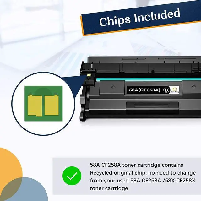 [With Chip]: Colorking Compatible 58A Toner Cartridges Come with Recycled HP Chips and You Don't Need to Transfer Chip from Original 58A or 58X. Easy to Install.
