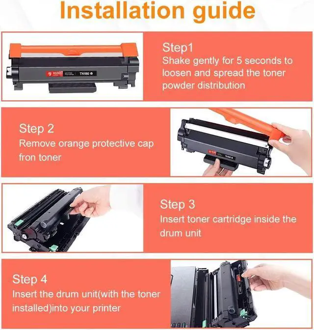 Package Included:4 Black TN660 Toner Cartridge
