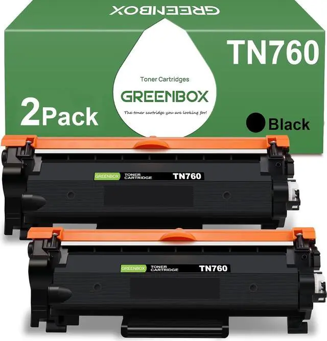 GREENBOX TN760 TN-760 compatible toner cartridge Content: 2 Pack of TN760 TN-760 replacement toner cartridges (2 Black) Page Yield: 3, 000 Pages per black toner cartridge ,total pages of 2 black 6, 000 (5% coverage) We provide high-quality toner cartridges to give you broader choice for your daily printing needs. Printer Compatibility (Warm tips: please check the printer model firstly to ensure that it is correct model for you) DCP Series: DCP-L2550DW MFC Series: MFC-L2710DW / MFC-L2750DW / MFC-L2750DWXL HL Series: HL-L2350DW / HL-L2370DW / HL-L2370DWXL / HL-L2390DW / HL-L2395DW