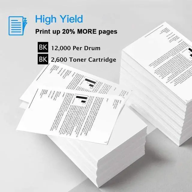 High Page Yield:More 20% than others (12,000 pages/drum unit and 2,600 pages/black, per cartridge)