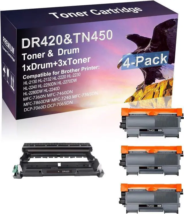 Package included: Compatible DR420 Drum Unit Replacement for Brother DR-420 Drum Kit (4-Pack, Drum, 3-Toner)