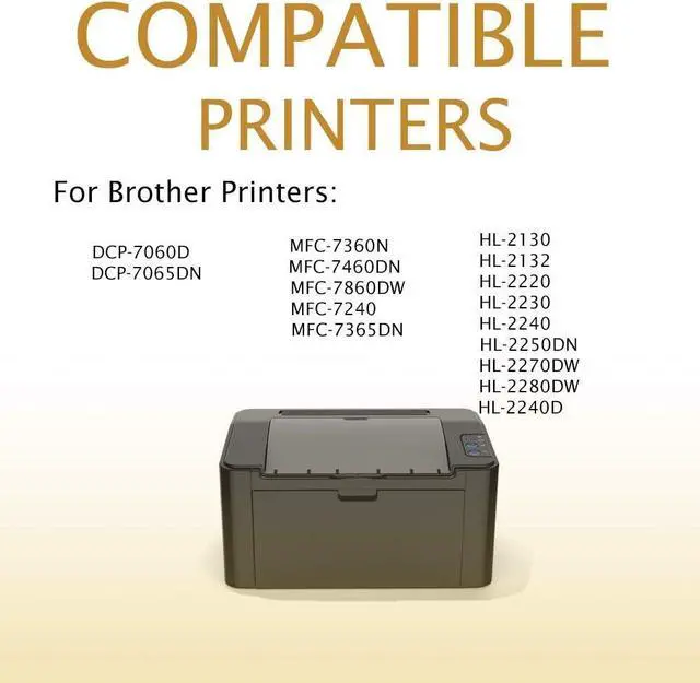 Compatible With: Brother HL-2130 HL-2132 HL-2220 HL-2230 HL-2240 HL-2250DN HL-2270DW HL-2280DW HL-2240D MFC-7360N MFC-7460DN MFC-7860DW MFC-7240 MFC-7365DN DCP-7060D DCP-7065DN Printer