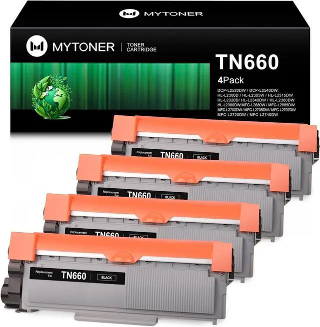 4-Pack Black Replacement for TN660 TN-660 TN630 Toner Cartridges
