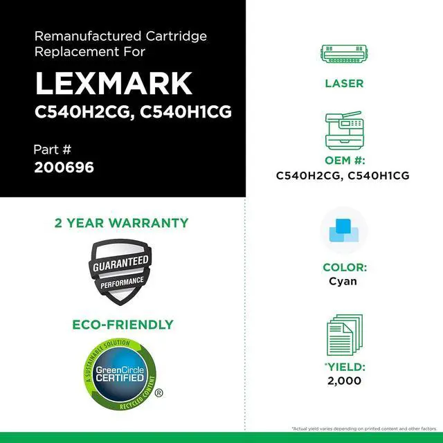 Our premium replacement imaging supplies are designed to be a true quality alternative to the OEM while offering significant savings. Our broad product line offers a superior product selection, exceptional performance, and significant cost savings. Our imaging supplies are 100% guaranteed to perform like the original Lexmark C540N, C543DN, C544DN, C544DW, C546DTN, X543DN, X544DN, X544DTN, X544N, X546DTN, X548DE, X548DTE. It yields 2,000.