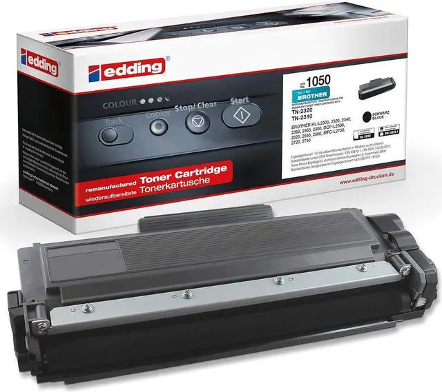 Toner Cartridge for 1050 Suitable for Brother TN 2320 black to match your system or your style. Max. Number of printed pages: 2600. Colour: Black. For printer type: Laser Printer. Suitable for the following Brother printers: HL-2230, L2300D L2340DW, HL-2230, L2360DN L2365DW,/L2500D/ L2520DW,/L2540DN/L2560DW, Brother L2700DN Brother L2700DW, Brother L2720DW Brother L2740DW
