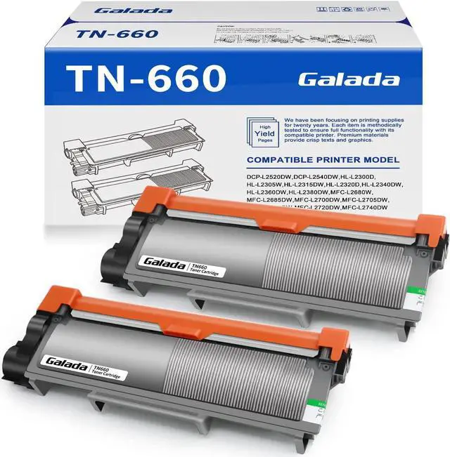 Galada Compatible Toner Cartridge Replacement for Brother Tn630 Tn660 for DCP L2520DW DCP L2540DW HL L2300D HL L2305W HL L2315DW HL L2320D HL L2340DW HL L2360DW HL L2380DW MFC L2680W MFC L2685DW MFC L2700DW MFC L2705DW MFC L2707DW MFC L2720DW MFC L2740DW 2Pack