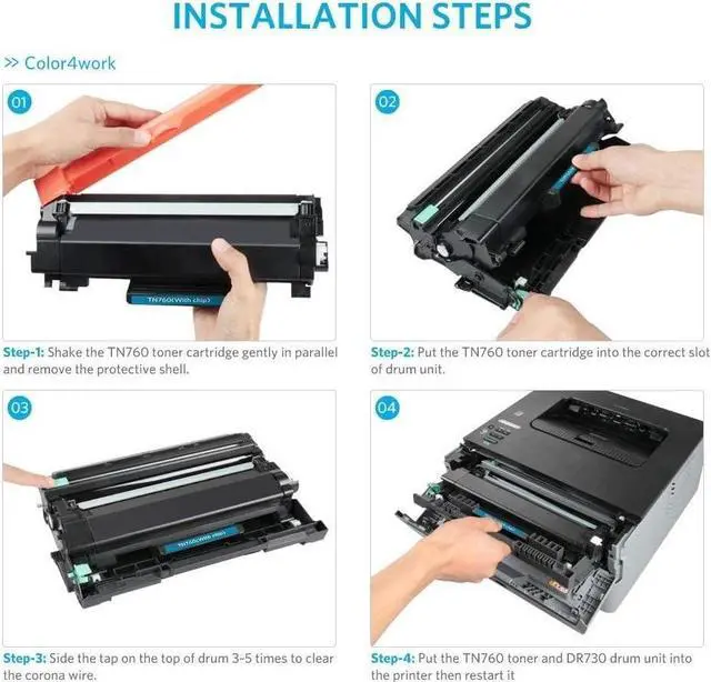 Color4work DR730 Drum Unit 1-Pack yields up to Black 12,000 pages. You can also get perfect printing when it uses with Color4work TN760 TN730 TN770 toner cartridge. Please make sure that our cartridges DR-730 compatible with your laser printers: