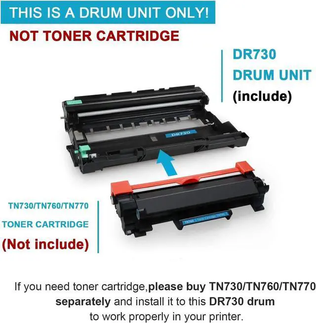 This item is only an imaging drum containing toner. Its an essential part for some Brother laser printers. You need to insert the correct toner cartridge like TN730, TN760 or TN770 in this drum cartridge to make it work.