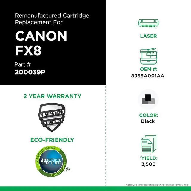 Toner cartridge is designed for use with Canon Fax L380, L380S, L390, L400; Faxphone L170; imageClass D320, D340, D360; LaserClass 310, 510; PC-D320 and PC-D340. Cartridge yields approximately 3,500 pages based on 5 percent coverage.