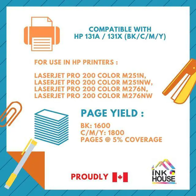 InkHouse Compatible Cartridge for HP 131A, 131X CF210, CF210X CF211, CF212, CF213 Toner Cartridge Combo BK/C/M/Y - - ,For LaserJet Pro 200 Color M251n,LaserJet Pro 200 Color M251nw,LaserJet Pro 200 C