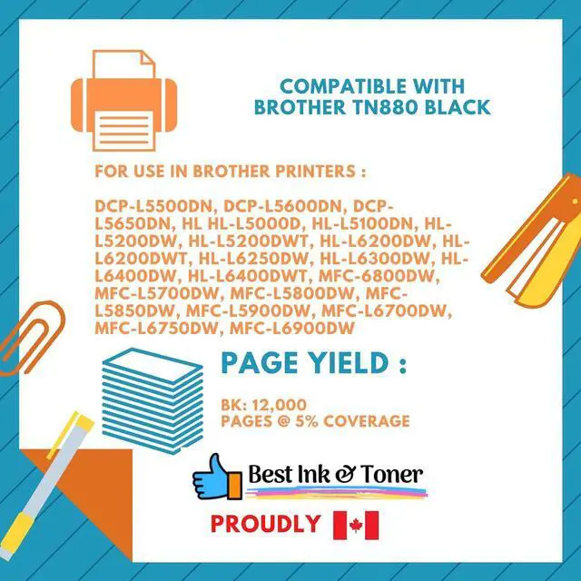 For use with Brother Mono Laser Printer Models:Brother - DCP Series DCP-L5500DN DCP-L5600DN DCP-L5650DN HL HL-L5000D HL-L5100DN HL-L5200DW HL-L5200DWT HL-L6200DW HL-L6200DWT HL-L6250DW HL-L6300DW HL-L6400DW HL-L6400DWT MFC MFC-6800DW MFC-L5700DW MFC-L5800DW MFC-L5850DW MFC-L5900DW MFC-L6700DW MFC-L6750DW MFC-L6900DW