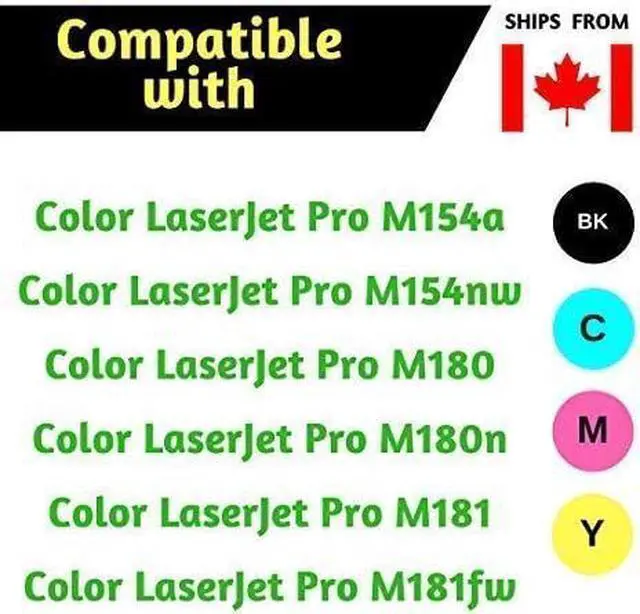 For use in Color LaserJet Pro M154a, Color LaserJet Pro M154nw, Color LaserJet Pro M180, Color LaserJet Pro M180n, Color LaserJet Pro M181, Color LaserJet Pro M181fw AND Page Yield: BK: 1100, C/M/Y:900 @ 5% Coverage