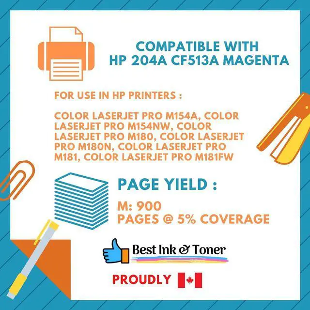 Best Compatible High Quality Toner for HP 204A CF513A Magenta Toner Cartridge, Color LaserJet Pro M154a, Color LaserJet Pro M154nw, Color LaserJet Pro M180, Color LaserJet Pro M180n, Color LaserJet P