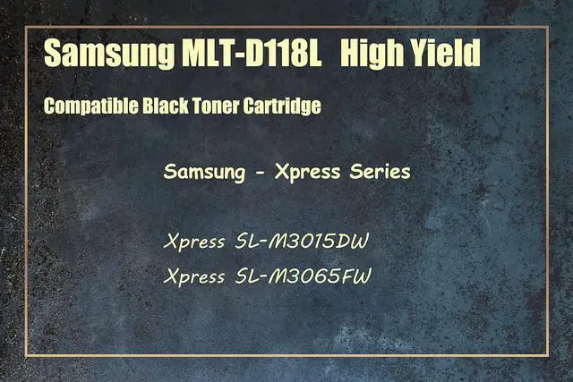 Ultra Toner provides premium compatible toner cartridges. Excellent performance as same as OEM product, but more cost-effective. This toner is brand new, compatible with Samsung MLT-D118L black toner cartridges. Expected page yield of 4,000 pages @ 5% coverage. The manufacturer is trustable, certified with ISO-9001/14001 & STMC. Compatible printers include: Samsung Xpress SL-M3015DW, Xpress SL-M3065FW. If you have any questions or need technical support, please feel free to contact us at anytime. We are happy to help you 24/7.