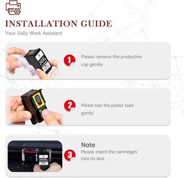 Advantages: These 245 and 246 XL black and color ink for Canon printer compatible for Cannon PG 243XL black ink cartridge and CL 244XL color ink cartridge have a higher printing quality than others, resisting fading, smudging and blurring as well as bringing you dependable printouts