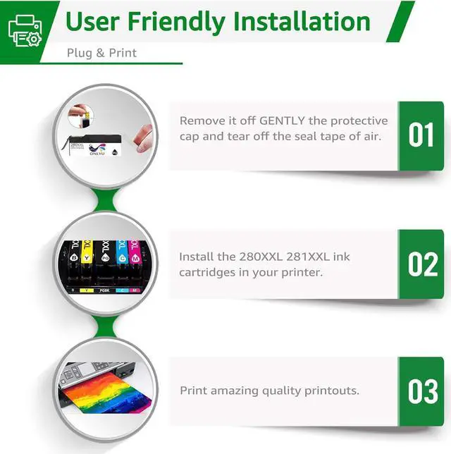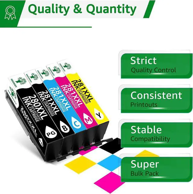 Page Yield: Up to 600 pages per PGI-280XXL large black cartridge, 6360 pages per CLI-281XXL small black cartridge, and 830 pages per CLI-281XXL color ink cartridge